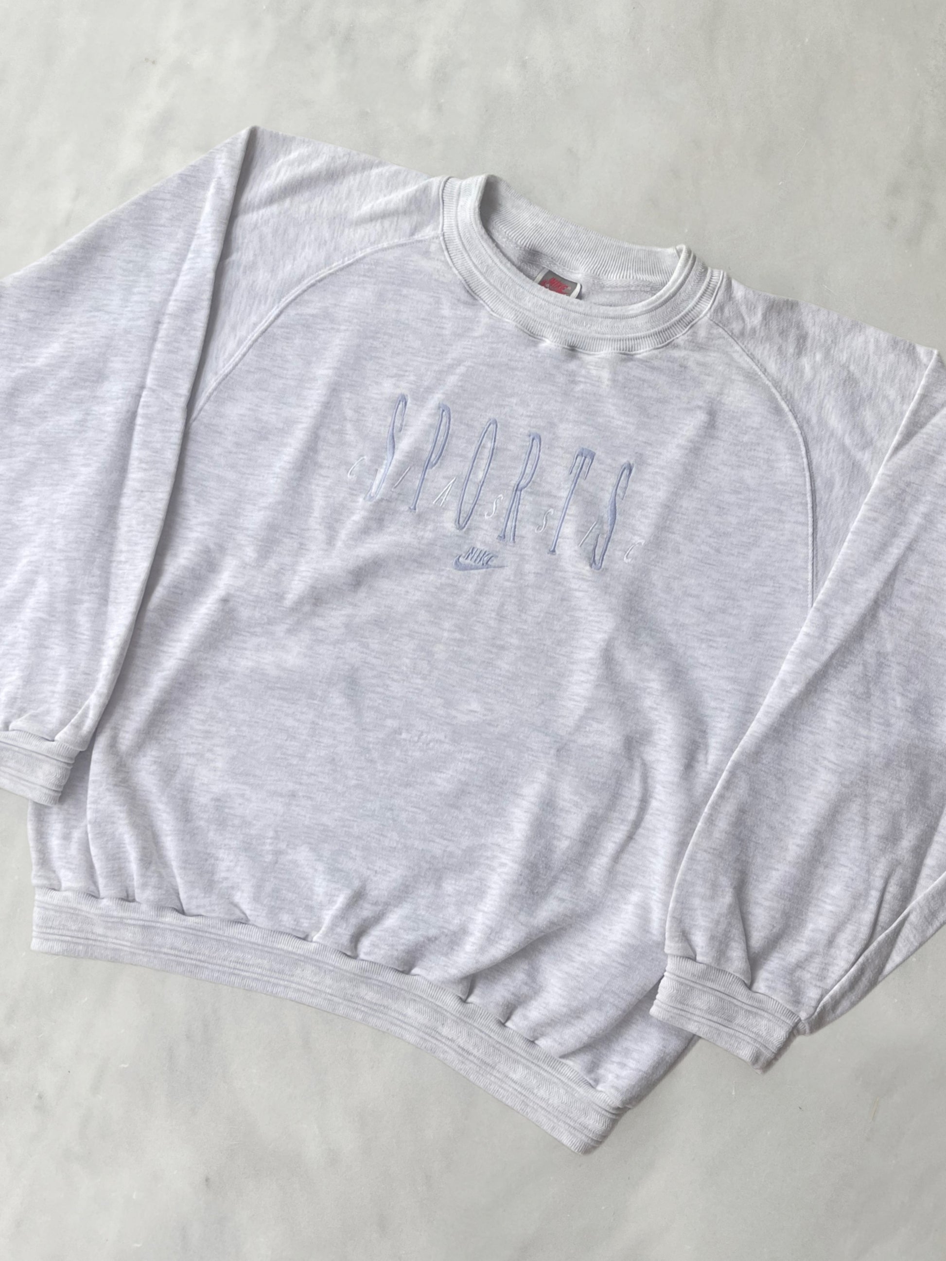 NIKE 1990s LIGHT GREY EMBROIDERED “SPORTS” VINTAGE CREWNECK SWEATSHIRT